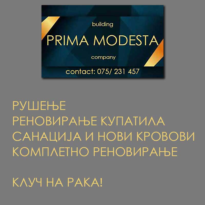 PRIMA MODESTA е градежна компанија специјализирана за целосна изведба и реновирање на сите видови објекти – од темел до кров, по систем „клуч на рака“.